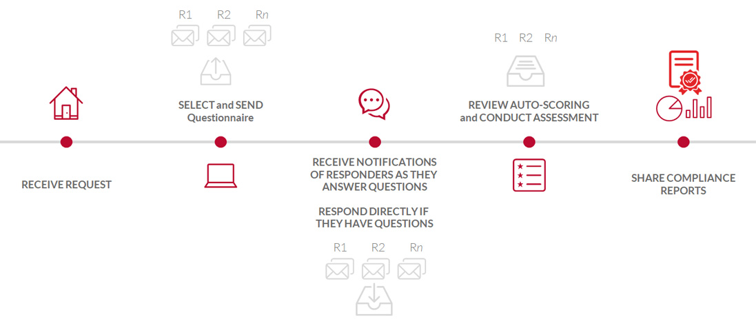 Netspective Attest is the easiest way to create requests for information (RFIs) or security assessment questionnaires, quickly share them with respondents, score them, and track compliance and responses longitudinally.