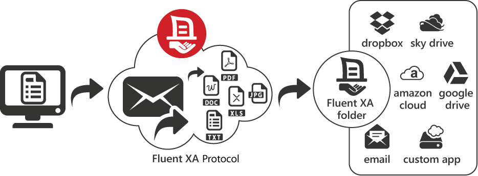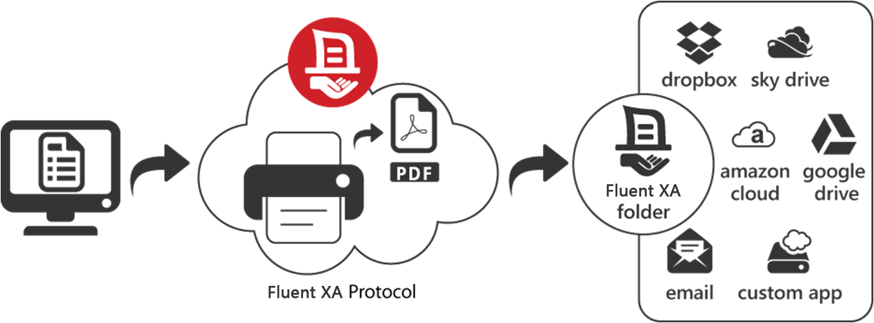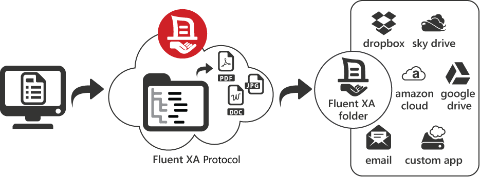 Fluent XS is a series of server apps such as agent admin, gateway monitor, and print processor which acts as the secure conduit between all agents and external cloud systems.