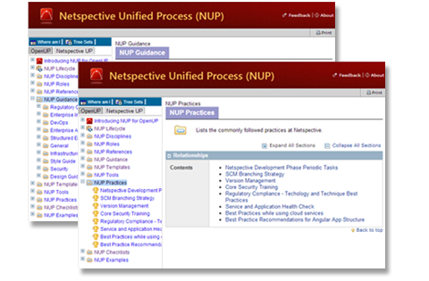 NUP is a compilation of practices and guidelines that have been created via significant research and experience. It contains a wealth of knowledge that the team refers to during every phase of a product lifecycle. No single process can fit every team so NUP comes with tools that let you extend, adapt, and elaborate all existing content.